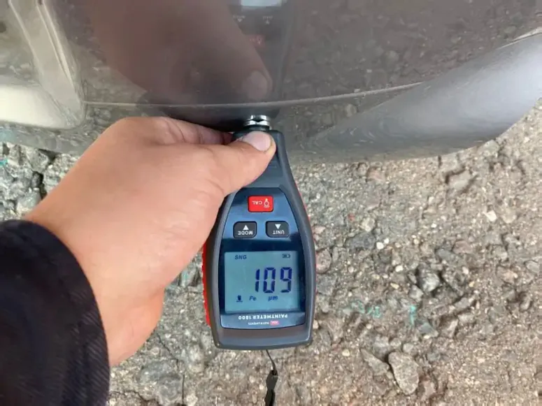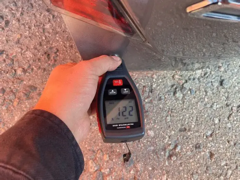 - Состояние ЛКП: Замер толщины лако-красочного покрытия в пяти точках (центр, углы). Норма для оригинальной детали — 90-110 микрон. Значительные отклонения говорят о перекраске.