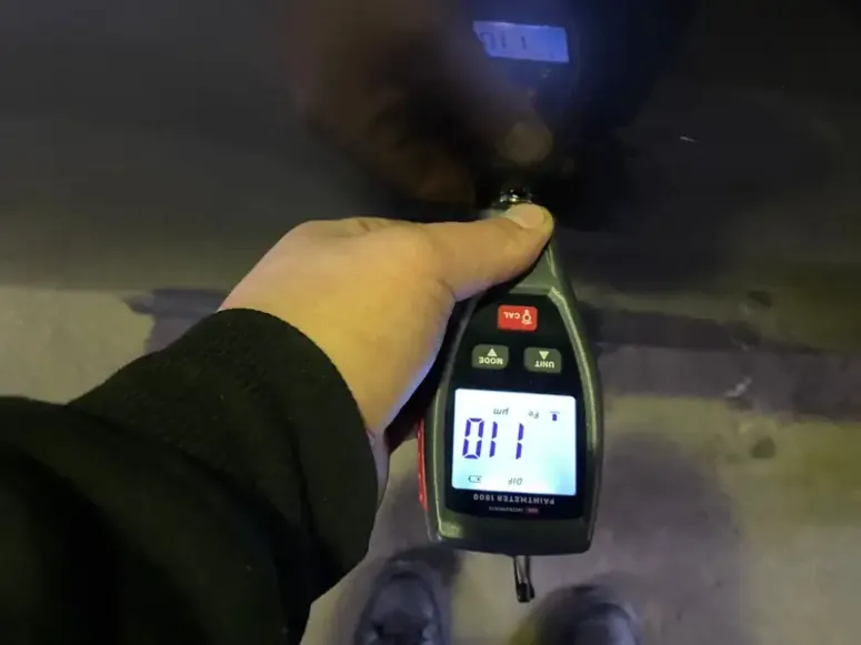 - Замер толщины ЛКП: в пяти точках (стойка, середина, низ). Норма для Lexus — 100-130 микрон. Отклонение говорит о перекраске.